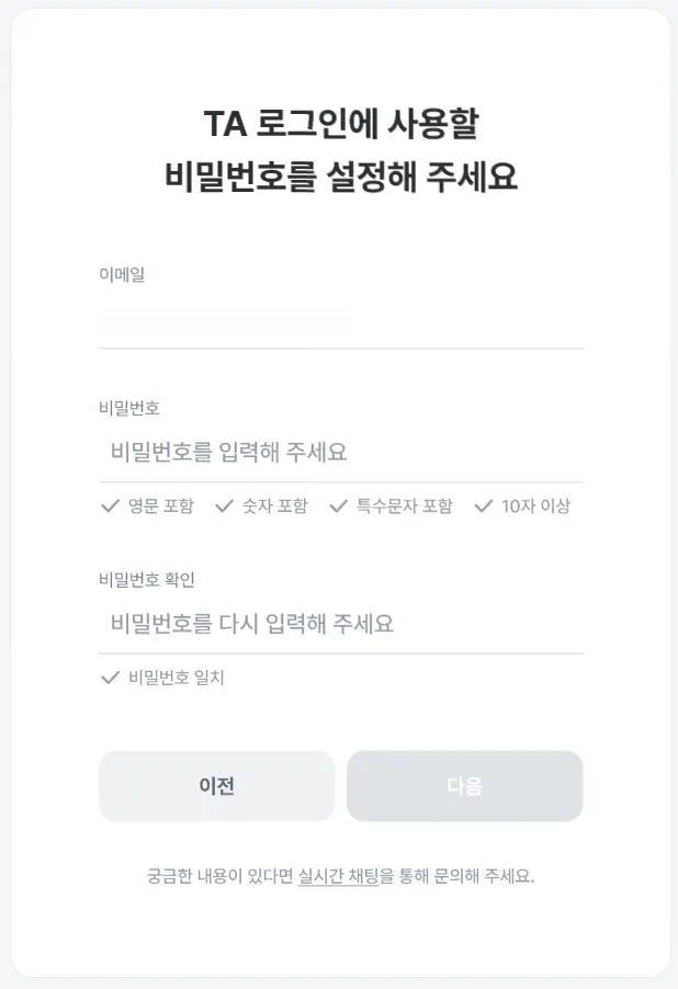 이후에도 TA 로그인 시 휴대폰번호로 인증 절차가 필요한 점 참고 부탁드립니다.