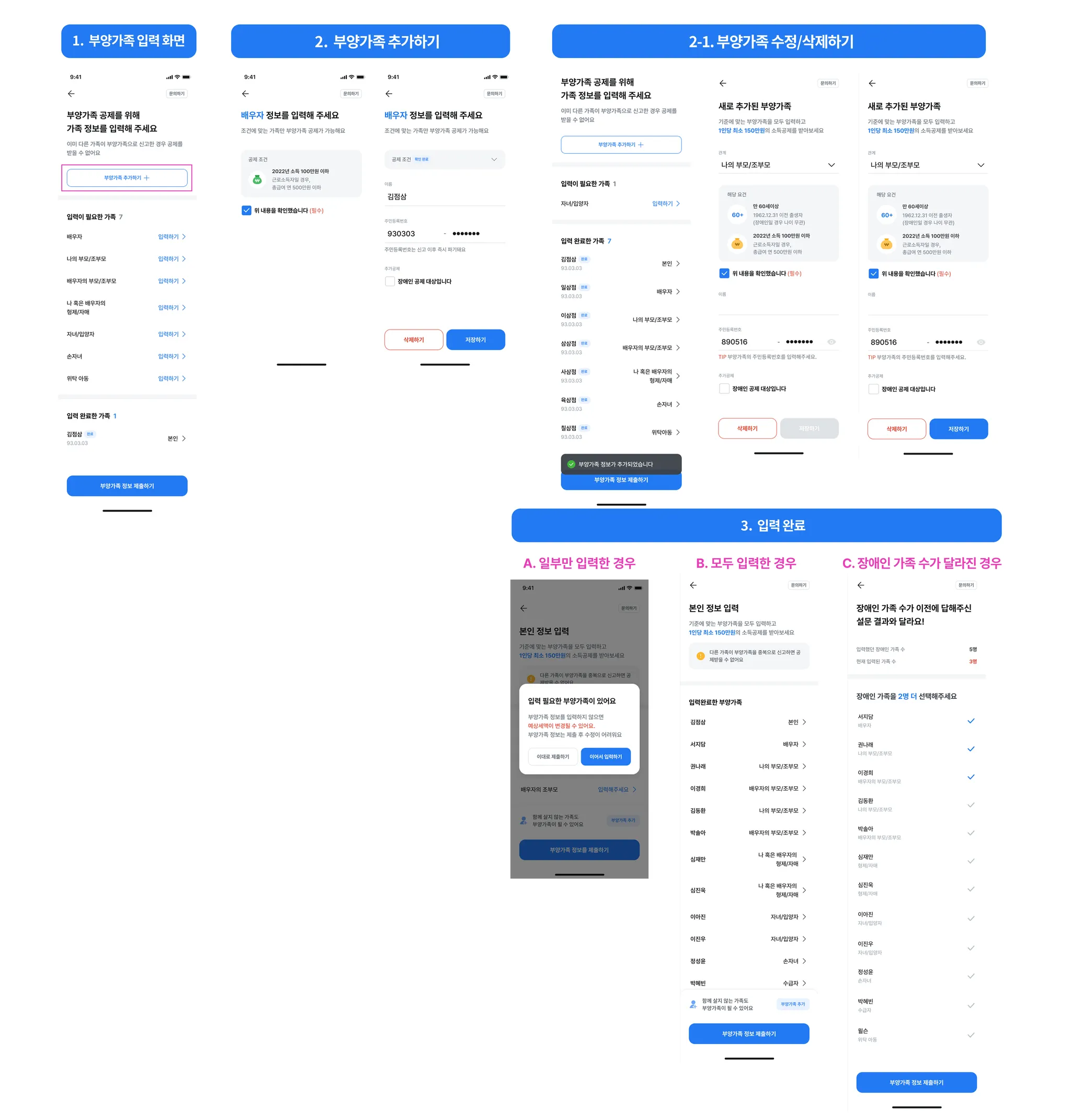 3. 부양가족 입력 상세 화면