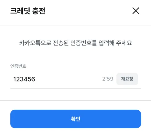 2-3. 카카오 인증번호 입력하면 충전 완료!