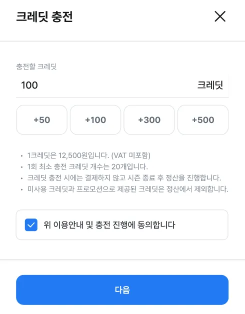 광고 크레딧을 직접 원하는 만큼 충전하실 수 있는 기능입니다.