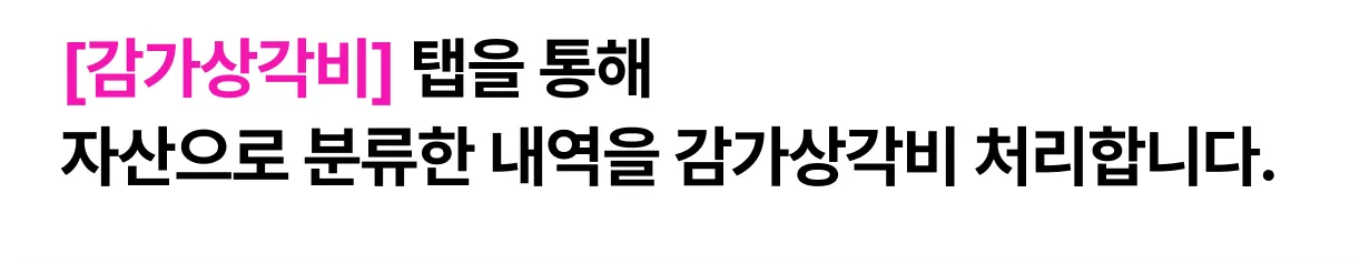 자산계정으로 분류할 경우 감가상각비탭에서 감가상각비 처리를 할 수 있습니다.
